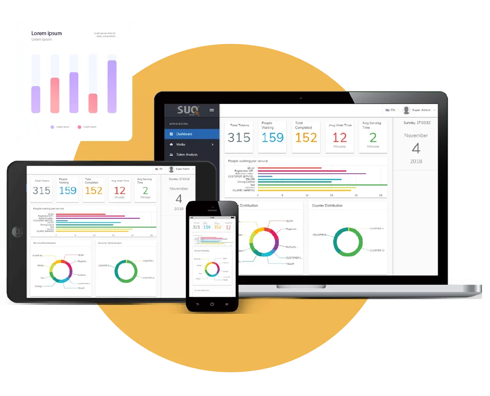 Система черг SuoQ має можливість надсилати миттєві SMS та повідомлення, щоб ваш клієнт не пропустив свій черговий слот і міг переглядати інформацію про чергу в режимі реального часу. Це підвищує комунікацію та залучення клієнтів.